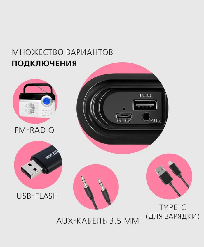 Описание Портативная колонка Smartbuy HERO, 16Вт, Bluetooth, FM, USB, красный (SBS-5290)