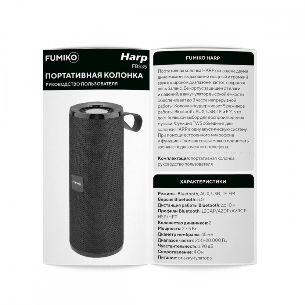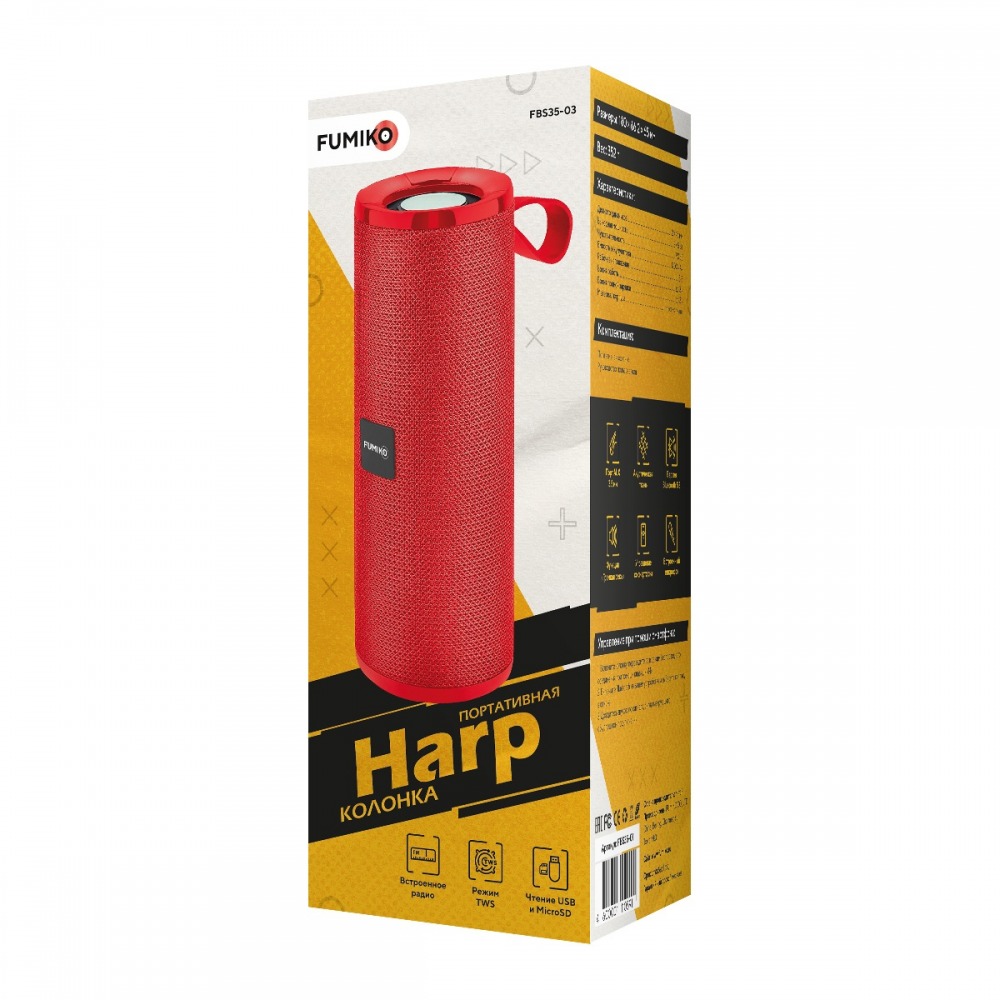 Описание Портативная колонка FUMIKO HARP FBS35-03 (Bluetooht/USB/TF/AUX/3 ч/1200mAh/5Вт) красная