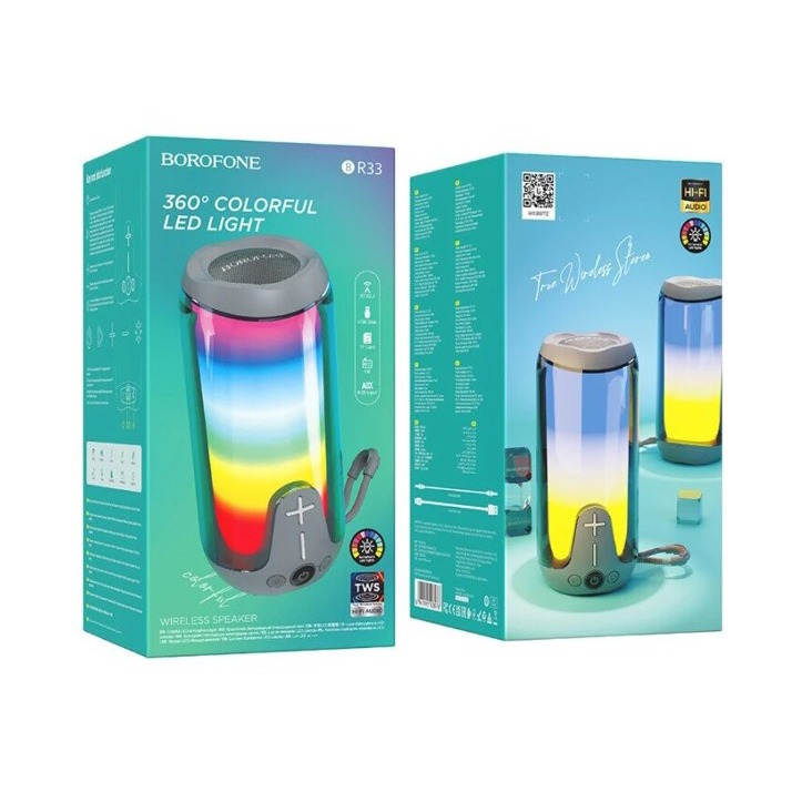 Портативная колонка BOROFONE BR33 (Bluetooth/USB/TF/AUX/5Вт/светящаяся) серая