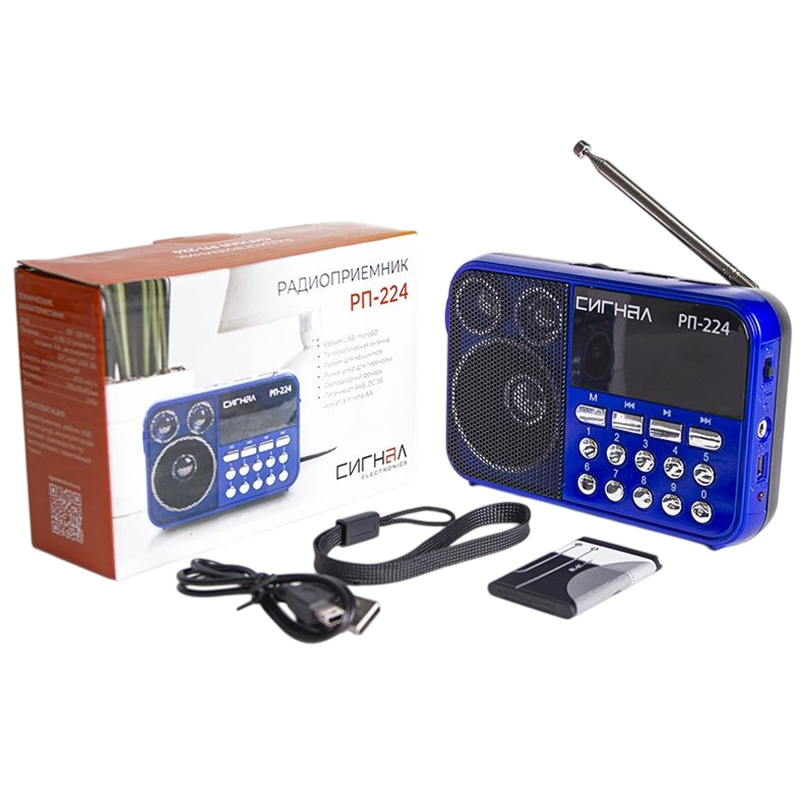 Радиоприёмник "Сигнал" РП-224, УКВ88-108МГц,СВ,КВ, акб.400mAh,бат. AA*3шт, USB/microSD, дисплей, фон
