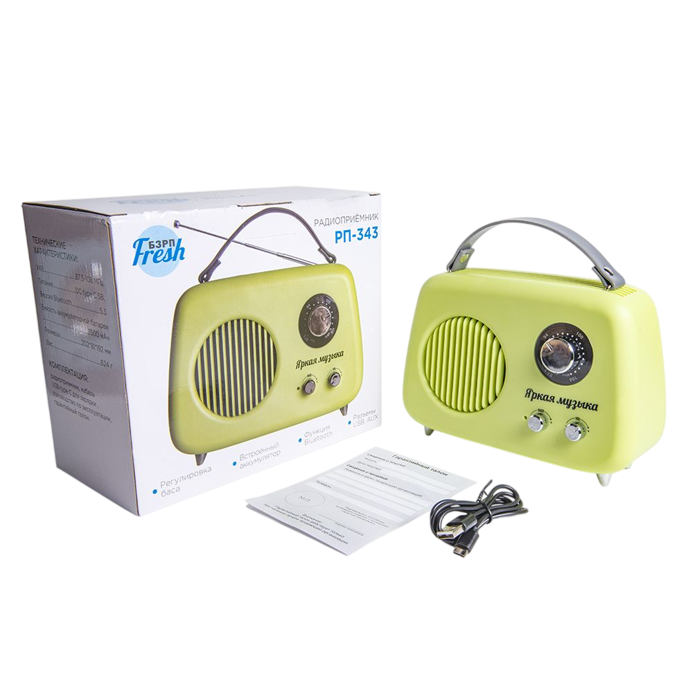 Радиоприёмник БЗРП Fresh РП-343 (УКВ 87.5-108МГц, DC5В, Акб. BT/USB/AUX), зелёный