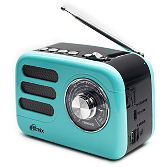 Радиоприемник трёхдиапазонный RITMIX RPR-033 AZURE, Bluetooth v.5.3, USB флэш/microSD, MP3, вход USB Type-C, лазурный(1/30)
