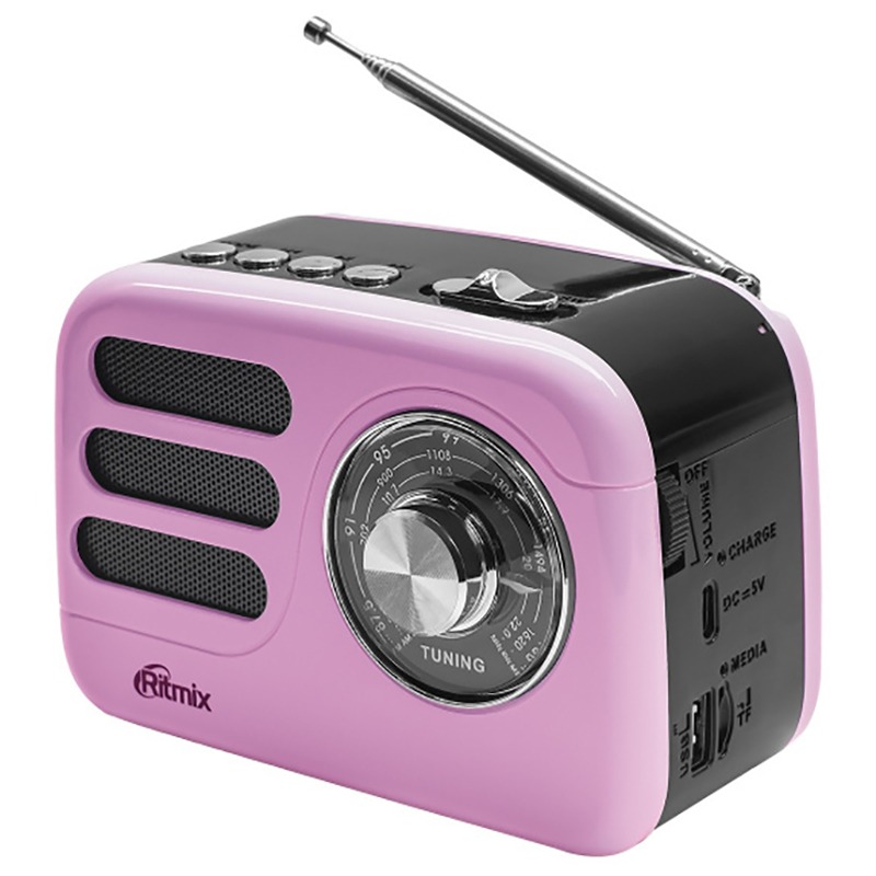Радиоприемник трёхдиапазонный RITMIX RPR-033 PINK, Bluetooth v.5.3, USB флэш/microSD, MP3, вход USB Type-C, розовый(1/30)