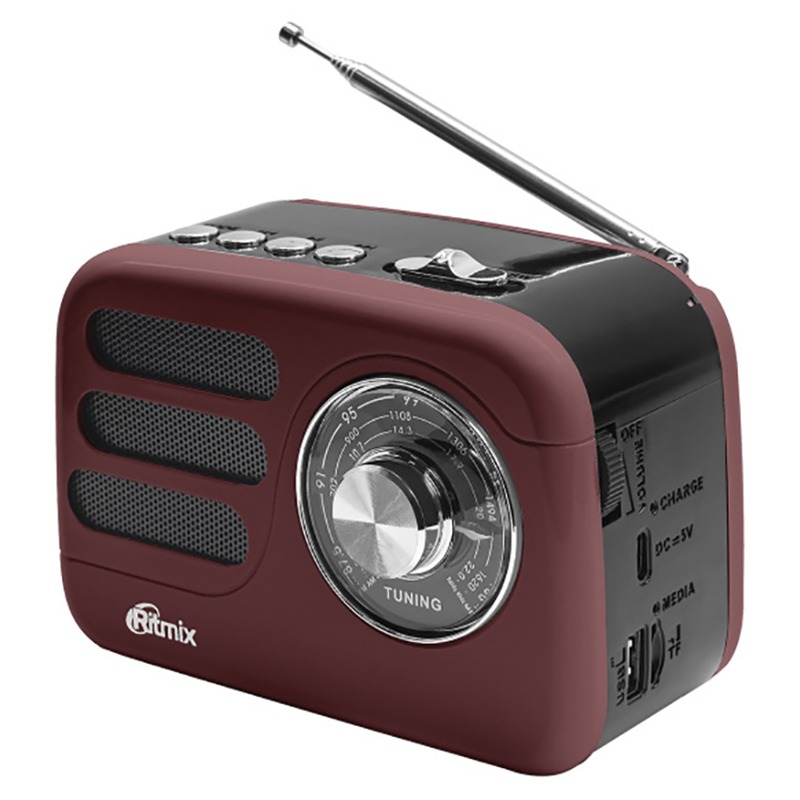 Радиоприемник трёхдиапазонный RITMIX RPR-033 CHOCOLATE, Bluetooth v.5.3, USB флэш/microSD, MP3, вход USB Type-C, шоколадный(1/30)