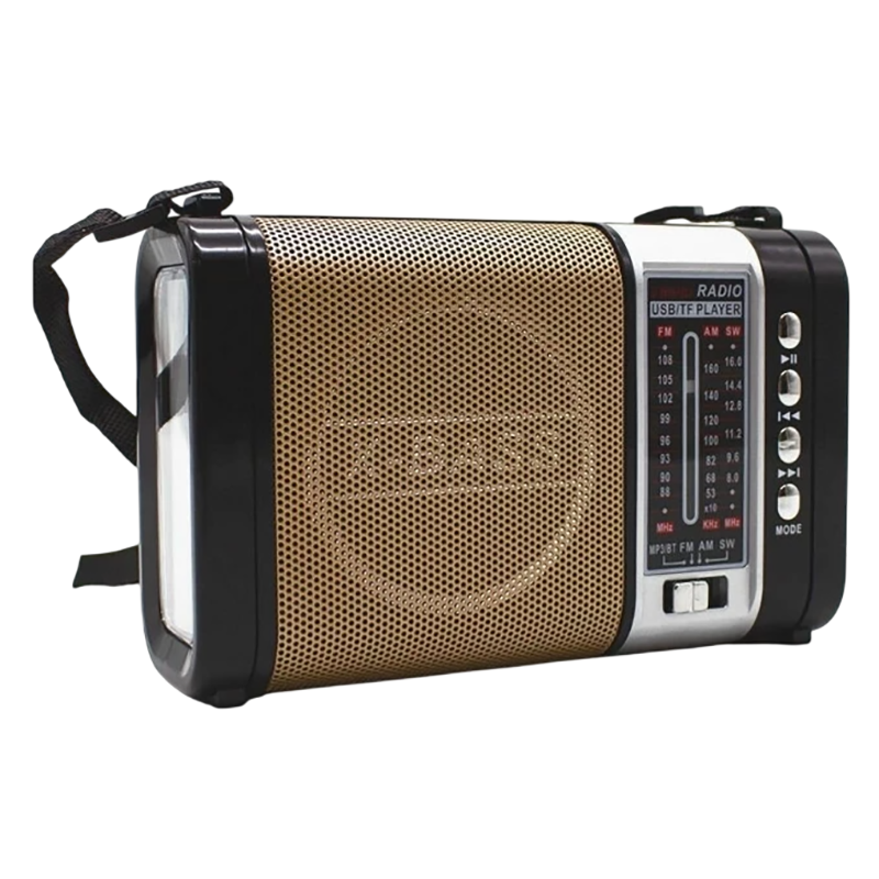 Радиоприемник Waxiba XB-772ВТ (Bl/USB/TF/FM/AM/SW/фонарик) золотистый