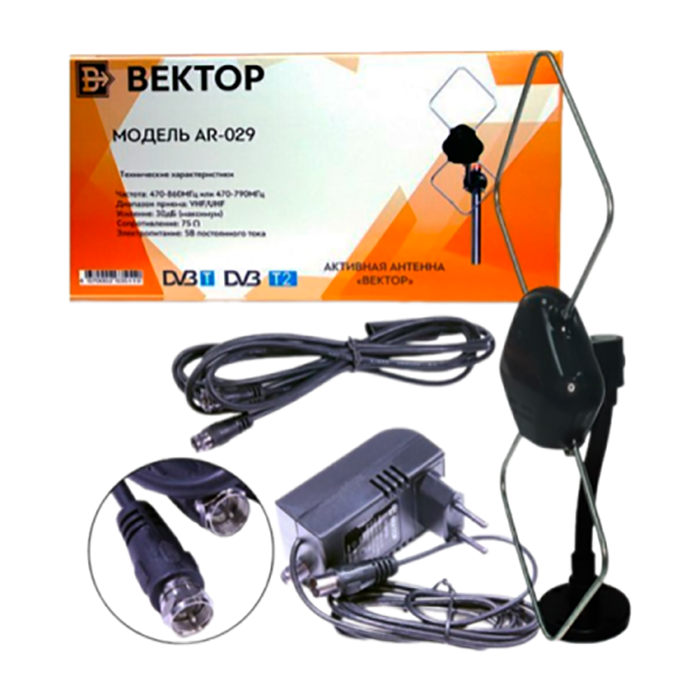 ТВ-Антенна комнатная Вектор AR-029 активная с питанием с усилителем DVB-T/T2 (1/10)