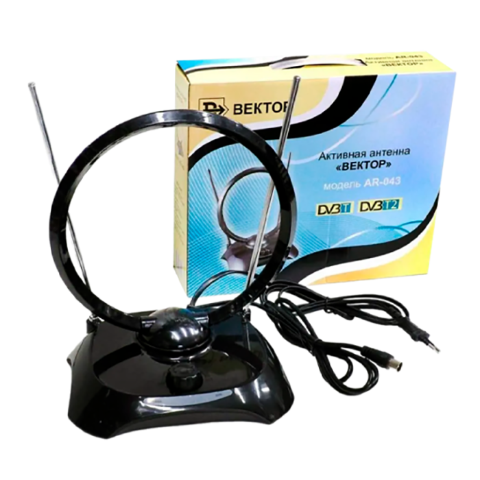 ТВ-Антенна комнатная Вектор AR-043 активная с питанием с усилителем DVB-T/T2 (1/20)
