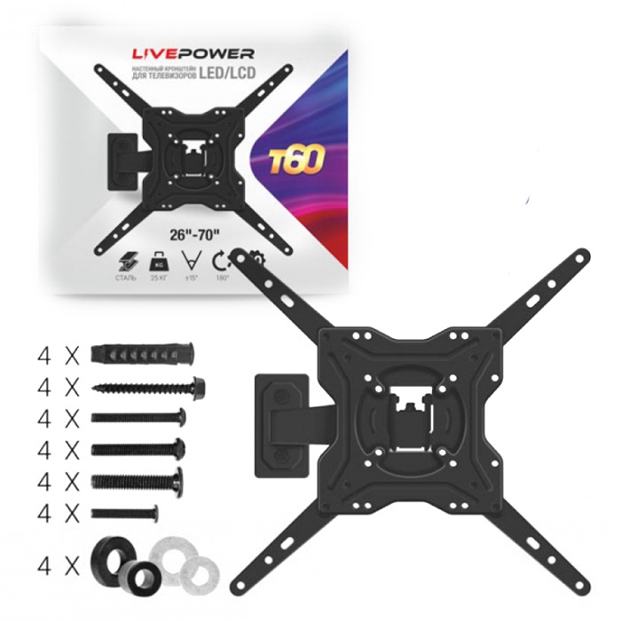 Кронштейн для LED/LCD телевизоров LP-T60 настенный поворотно-наклонный 26"-70" (черный