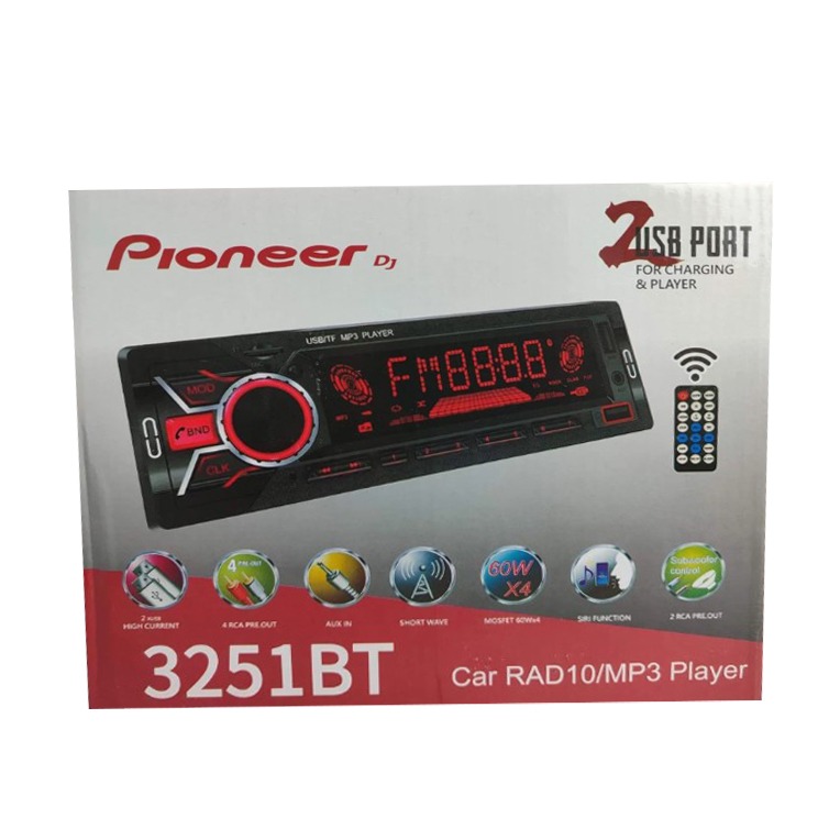 Автомагнитола Pioneeir 3251BT (Bluetooth/подсветк/USB/AUX/FM/пульт)