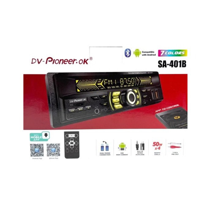 Автомагнитола Pioneeir SA-401B (Bluetooth/USB/AUX/FM/пульт)