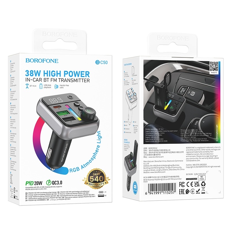 Автомобильный FM-трансмиттер BOROFONE BC50 Bluetooth (черный)