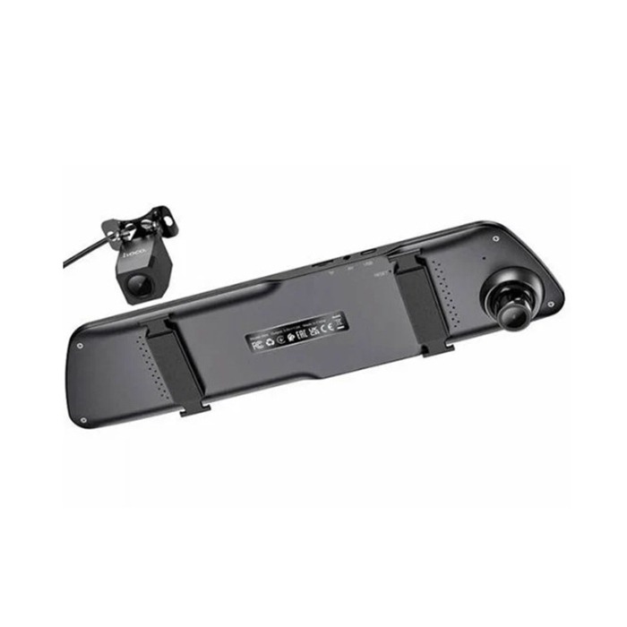 Автомобильный видеорегистратор HOCO DV4 + 2 камеры, зеркало заднего вида (черный)