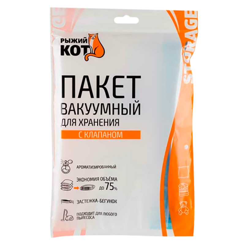 Пакет вакуумный для хранения Рыжий кот VB7 80см x 60см с клапаном прозрачный (1/10/50)