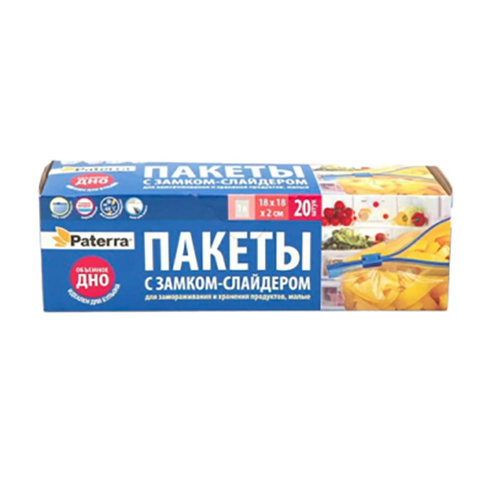 Пакет для заморозки Paterra 18см x 18см ПВД 40мкм со слайдером 20шт. (1/24)