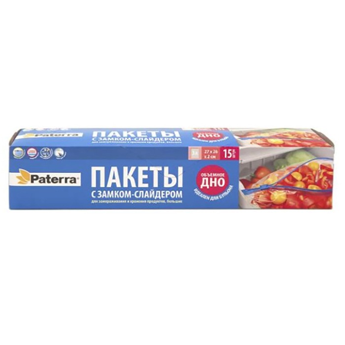 Пакет для заморозки Paterra 27см x 18см ПВД 40мкм со слайдером 15шт. (1/24)