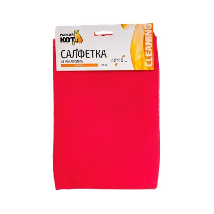Салфетка Рыжий кот CM-06 «Замша» 40х40см микрофибра автомобильная красный (1/10/100)