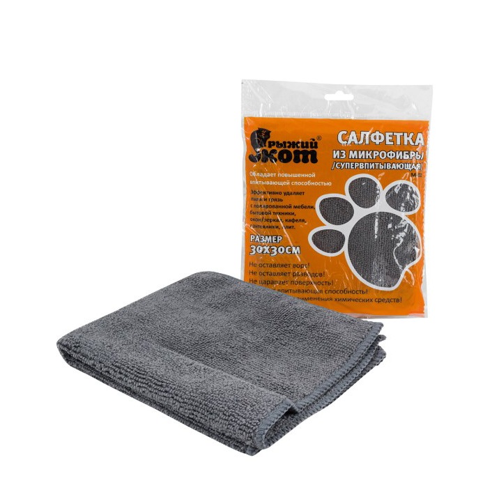Салфетка Рыжий кот M-02 30х30см микрофибра серый (1/40/200)