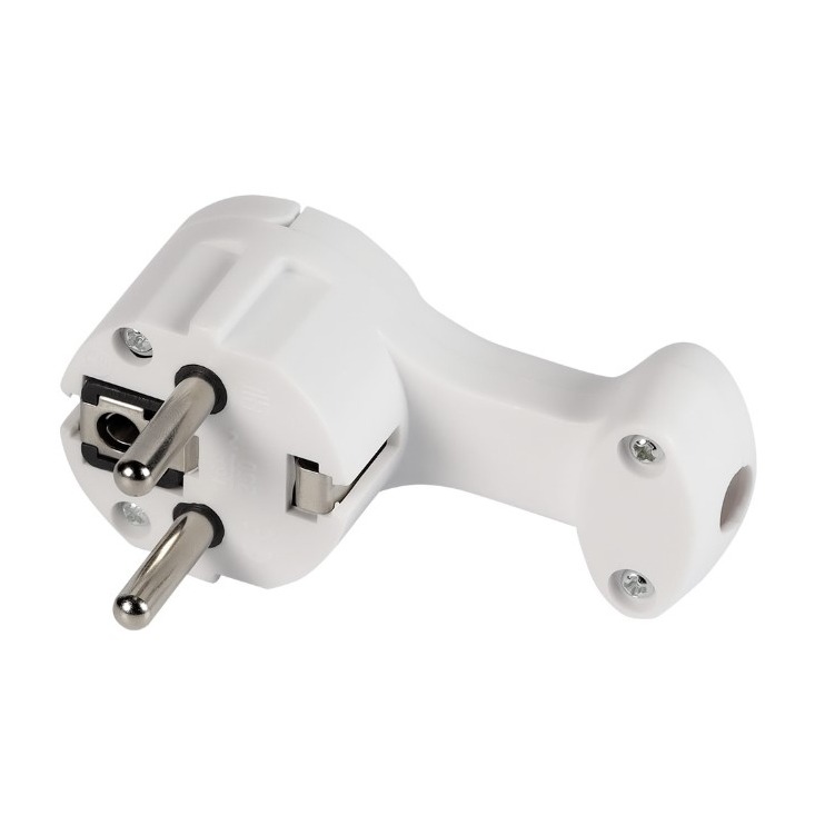 Вилка SMARTBUY угловая плоская (8 мм) с/з с кольцом белая 16А 250В (SBE-16-P11-w) (1/20/200)