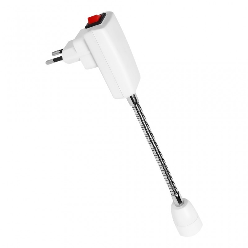 Переходник вилка-патрон Е14 гибкий 150мм с выключателем, белый (SBL-NL-003)