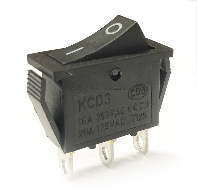 Переключатель узкий без подсветки KCD3-101/3P on-off 3 контакта 15A, 250В (чёрный)