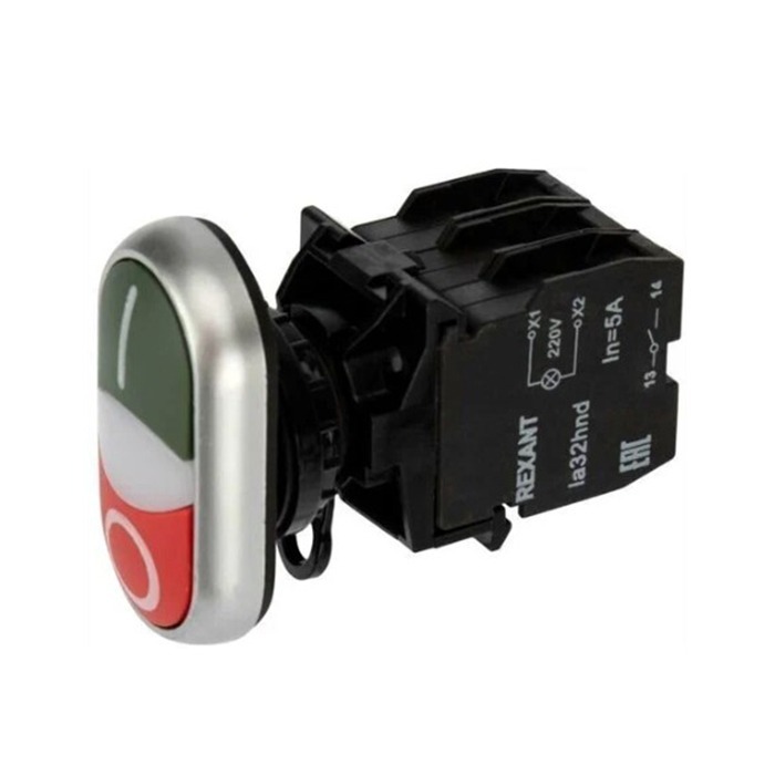 Кнопка LA32 «Пуск-Стоп» красно-зеленая с подсветкой NO+NC "Rexant"