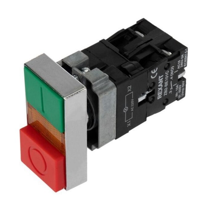 Кнопка LAY5 «I-O» прямоугольная 230В NO+NC "Rexant"
