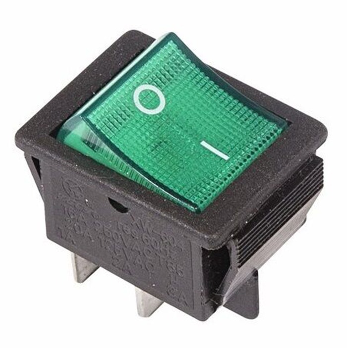 Выключатель клавишный 250V 16А (4с) ON-OFF зеленый с подсветкой (RWB-502, SC-767, IRS-201-1) Rexant