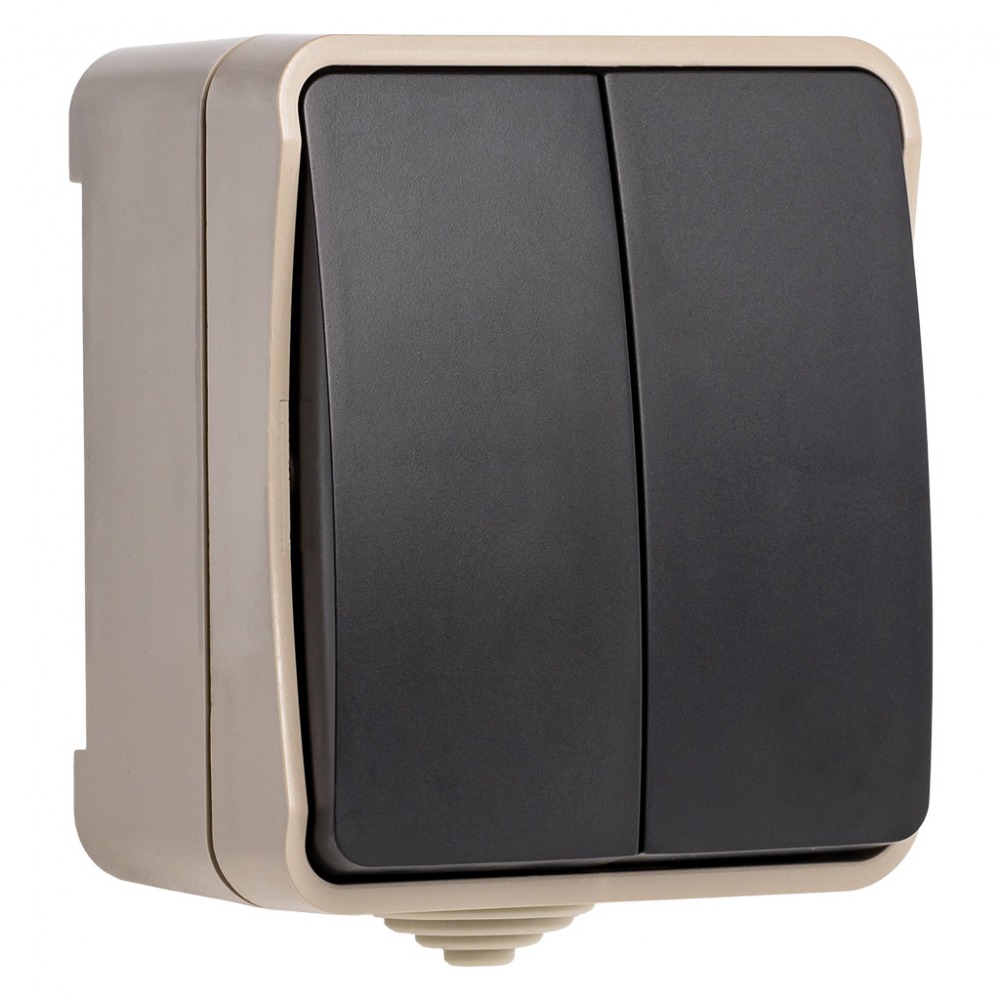 Выключатель SMARTBUY наружная установка 2-клавишный 10А, IP 54 "Сатурн" (SBE-04w-10-SW2-0) (1/18/216)