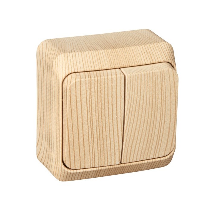Выключатель 2-кл. О/У ЭТЮД Дача 10А IP20 сосна Systeme Electric BA10-002D (1/25/200)