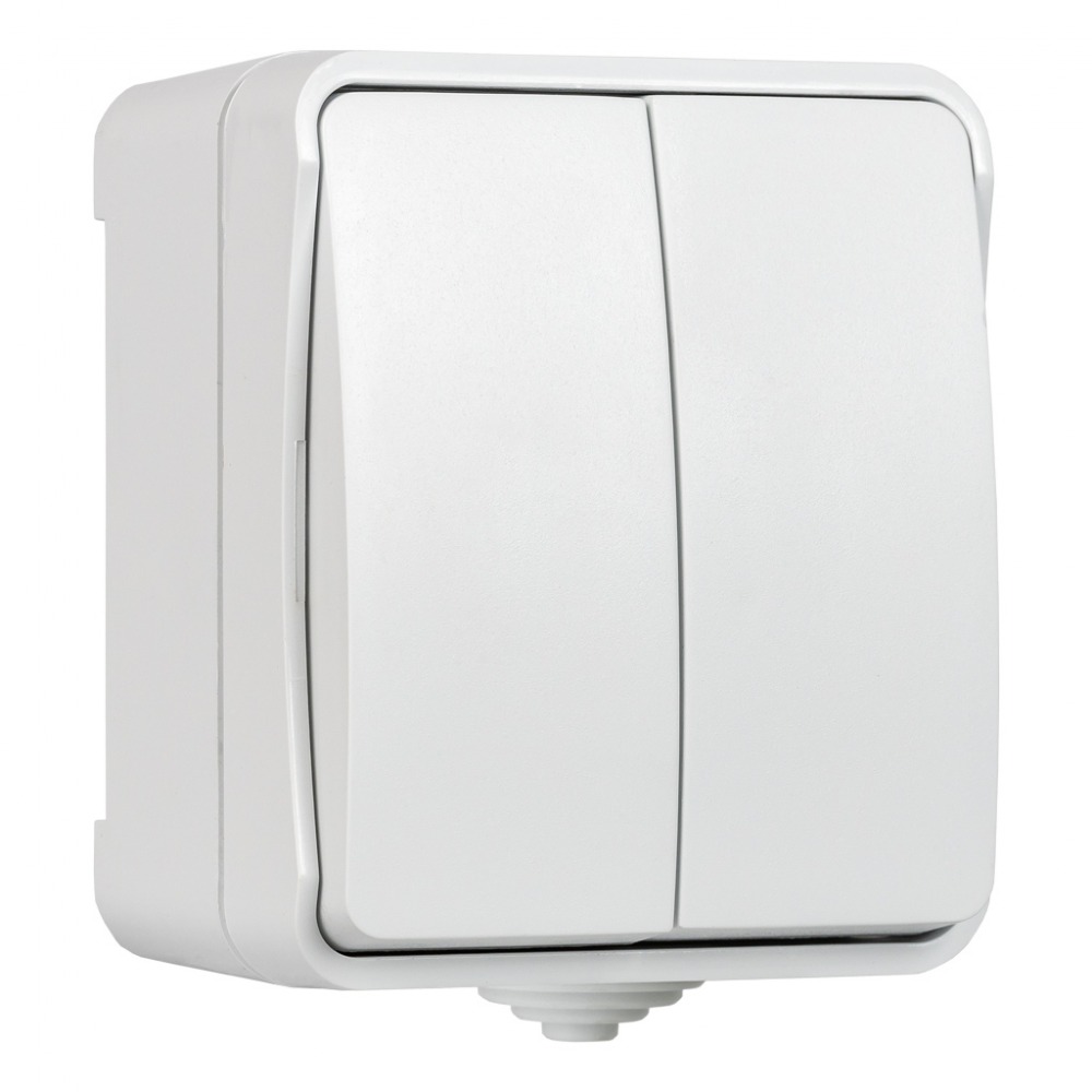 Выключатель SMARTBUY наружная установка 2-клавишный 10А, IP54, белый, "Сатурн" (18/216)