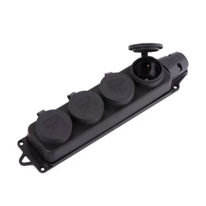 Колодка розеточная SMARTBUY 4 гнезда с защитными крышками каучуковая 230В, 2P+PE, 16A, IP44 черный (1/4)