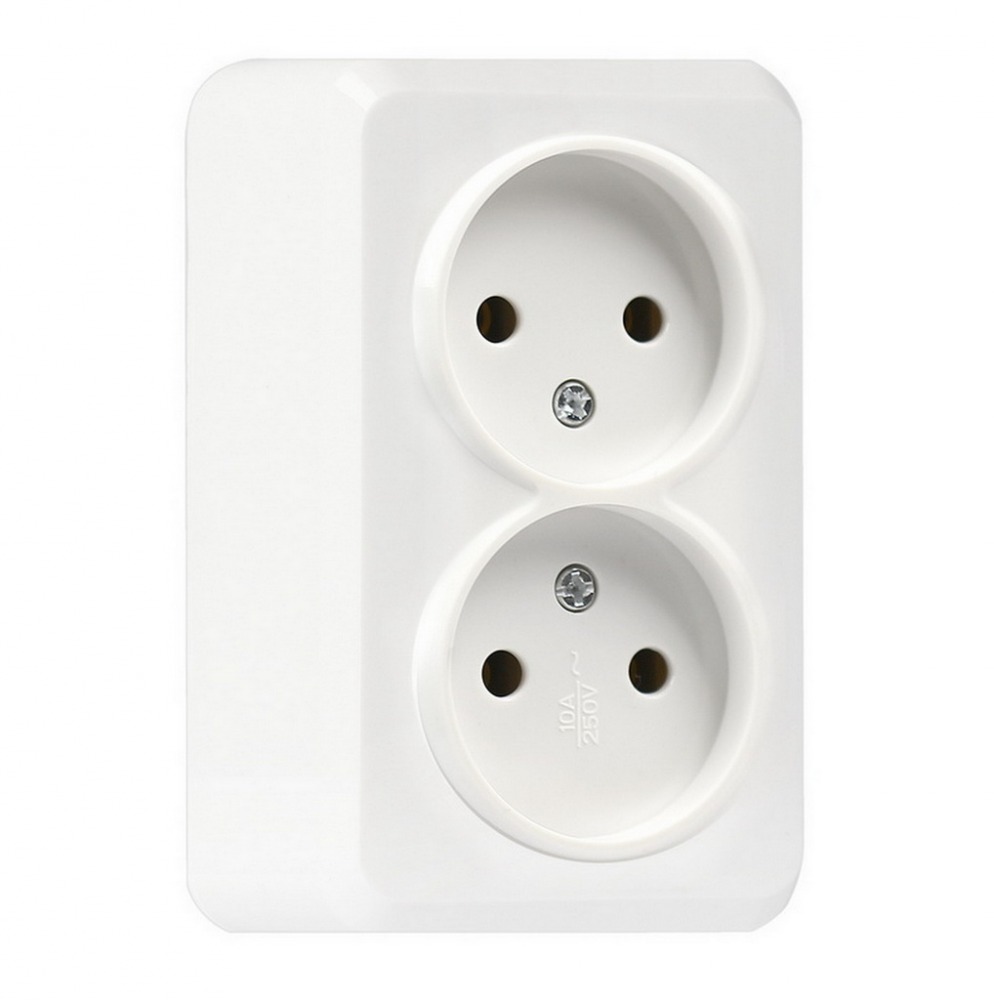 Розетка SMARTBUY 2-местная 10А, ОУ, без заземления белая, керамика "Юпитер" (SBE-03w-10-S2-N-c) (1/10)