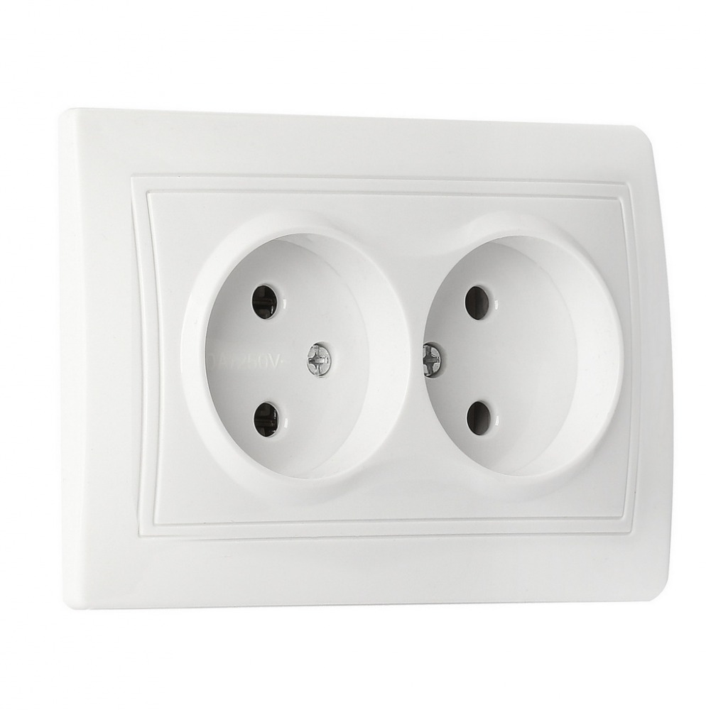 Розетка SMARTBUY скрытая установка, 2-местная без заземления 10А белая, керамика "Венера" (SBE-01w-10-S2-N-c) (1/10)