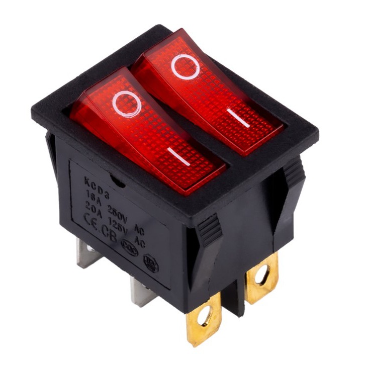 Выключатель клавишный двойной 250V 16А (6с) ON-OFF красный с подсветкой (SBE-16-S33r)