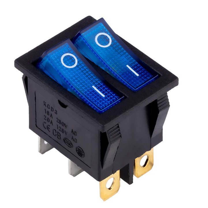 Выключатель клавишный двойной 250V 16А (6с) ON-OFF синий с подсветкой (SBE-16-S33bl)
