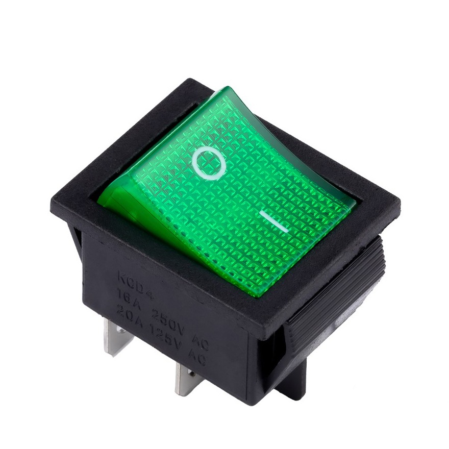 Выключатель клавишный 250В 16А (4с) ON-OFF зеленый с подсветкой (SBE-16-S31g-rp)