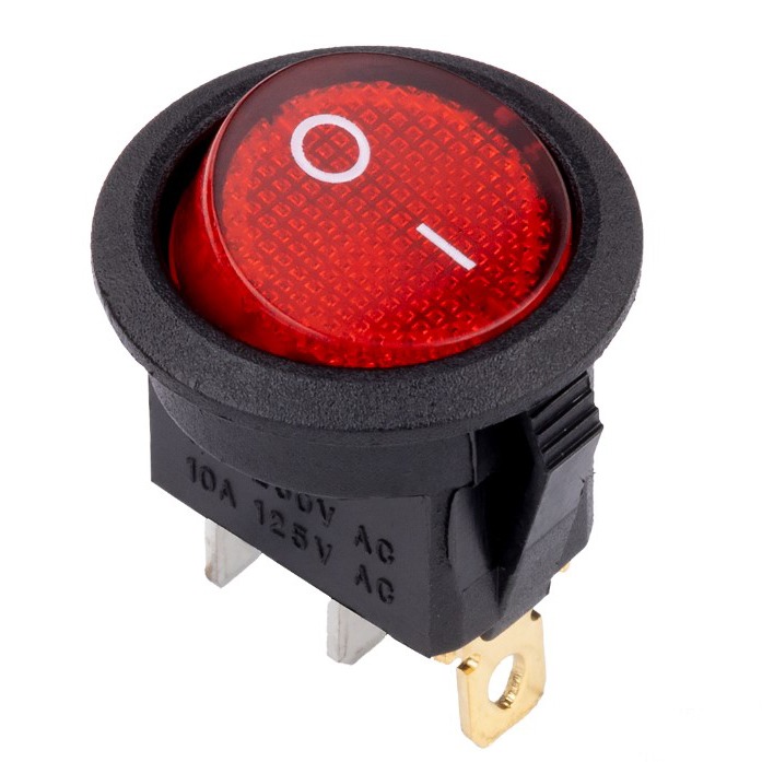Выключатель клавишный круглый 250В 6А (3с) ON-OFF красный с подсветкой (SBE-06-S30r-rp)