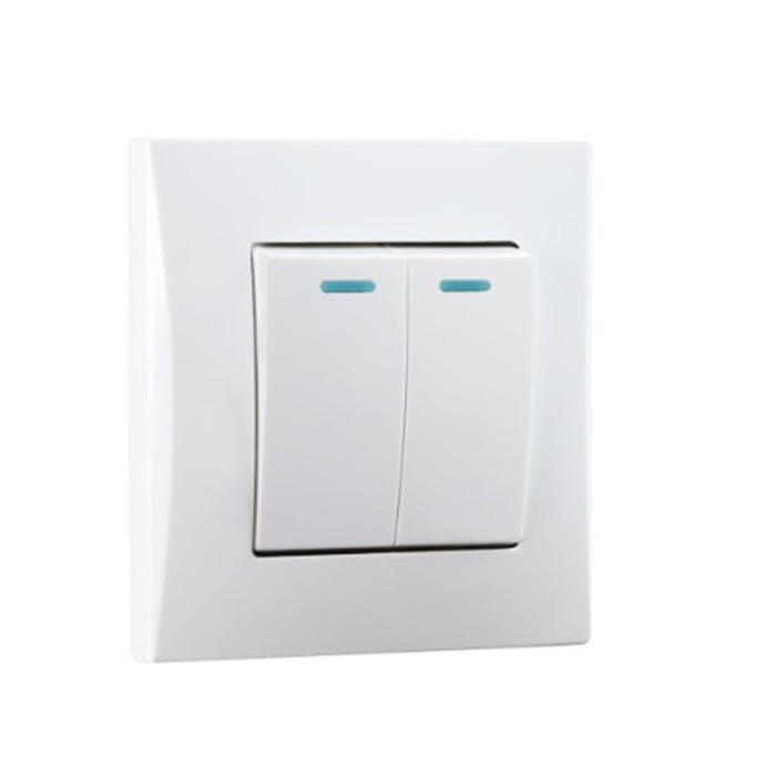 Выключатель 2-клавишный с индикатором 10А белый "Вега" (SBE-08w-10-SW2-1)