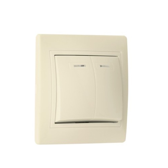 Выключатель 2-клавишный с индикатором 10А бежевый, керамика "Венера" (SBE-01i-10-SW2-1-c)