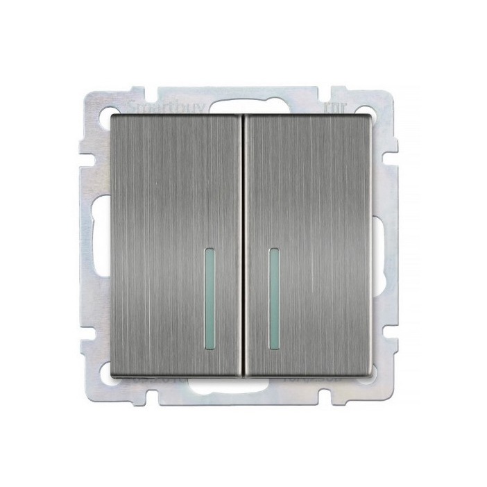 Выключатель 2-клавишный с индикатором 10А серый никель "Нептун" (SBE-05gn-10-SW2-1)