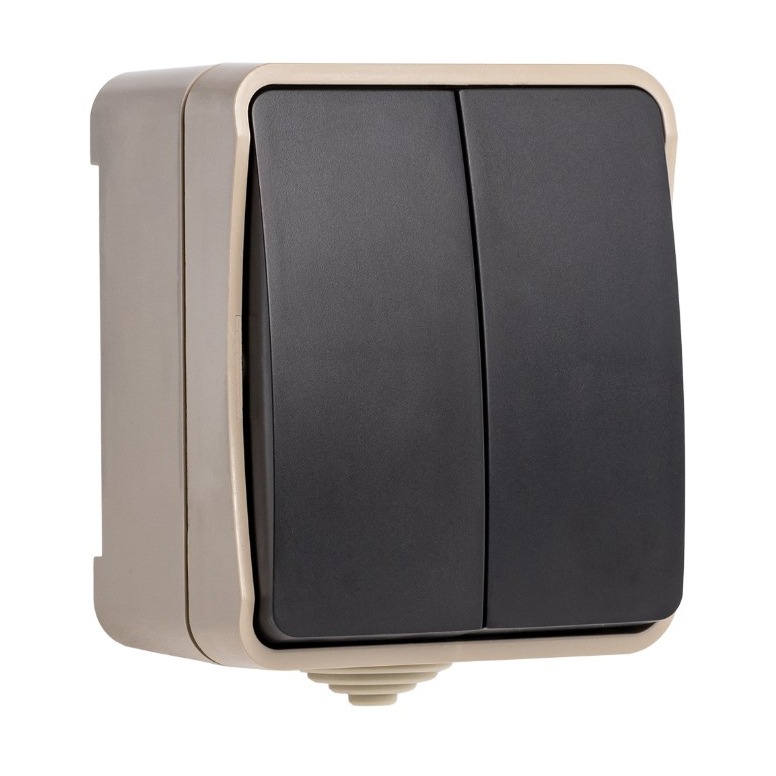 Выключатель 2-клавишный 10А, IP54, бежевый, "Сатурн" (SBE-04w-10-SW2-0)