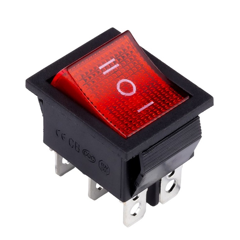 Переключатель клавишный 250В 16А (6с) ON-OFF-ON красный с подсветкой и нейтралью (SBE-16-S32r-rp)