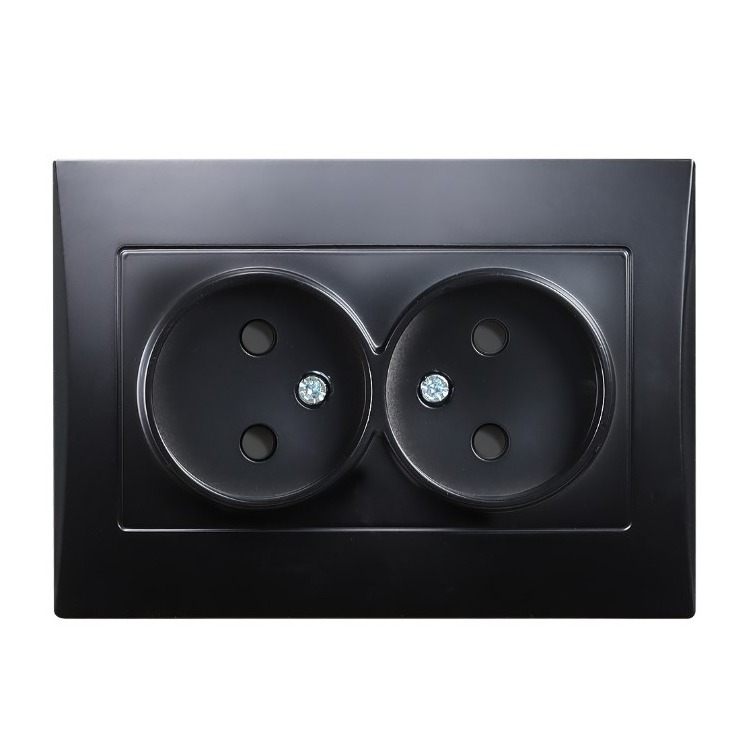 Розетка двойная без заземления 10A черная "Вега" (SBE-08b-10-S2-N)