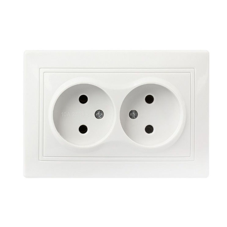 Розетка двойная одноместная без заземления 10А белая, керамика "Венера" (SBE-01w-10-S2-N-c)
