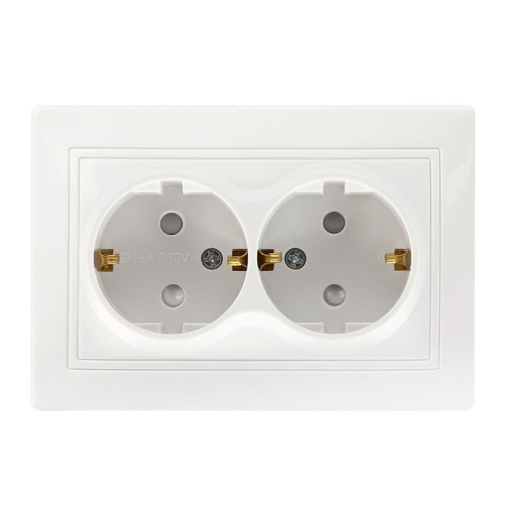 Розетка двойная одноместная с заземлением 16А белая с защ. штор. "Венера" (SBE-01w-16-S2-1Z-c)