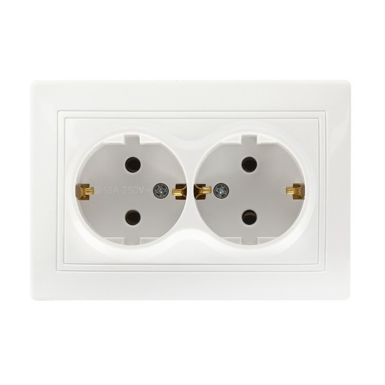 Розетка двойная одноместная с заземлением 16А белая, керамика "Венера" (SBE-01w-16-S2-Z-c)