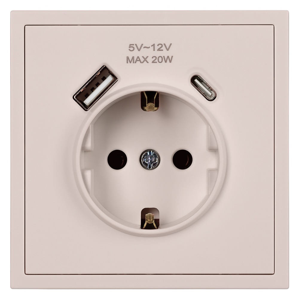 Розетка 1-местная с заземлением USB+Type 16А бежевая "Капелла" (SBE-09i-16-S1-USB)