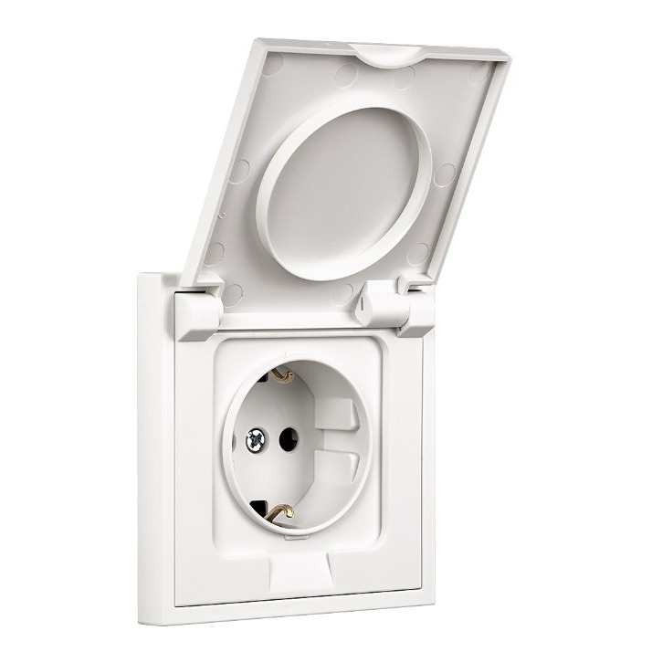 Розетка 1-местная с заземлением с крышкой 16А белая "Капелла" (SBE-09w-16-S1-1ZK)