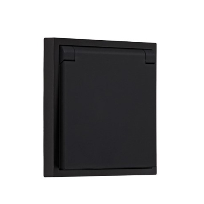 Розетка 1-местная с заземлением с крышкой 16А черная "Капелла" (SBE-09b-16-S1-1ZK)