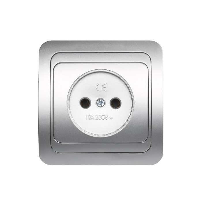 Розетка 1-местная без заземления 10А серебро "Марс" (SBE-02s-10-S1-N-c)
